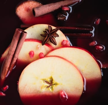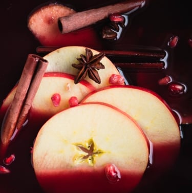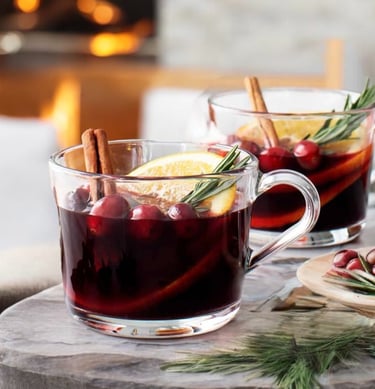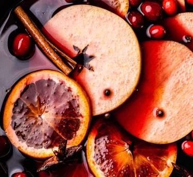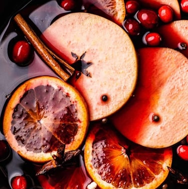 A Fruitful Infusion: Adding fresh fruit elevates mulled wine to new heights. Slices of Orange and Red Apple, along with fresh Cranberries, Blueberries, or Blackberries, Traditional or Asian Pear and Pomegranates Seeds contribute bright and festive notes that enhance the overall complexity.