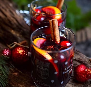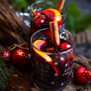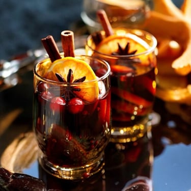 Serving with Flair : Traditionally, mulled wine is served in mugs, adorned with the fruit and spices used in the recipe. My traditional garnishes include apple, orange, and Asian pear slices, fresh cranberries or blueberries, and a cinnamon stick. Personally, I prefer serving it in large wine glasses with abundant fruit garnish; the contrast of the red wine and fruit is very festive on the holiday dining table. Ultimately, there's no right or wrong way here; do what makes you happy. Life is too short to strive to fit the norms of perfection that are impossible to archive—it's an illusion, existing only in the eye of the beholder. While I've struggled with this concept myself, I've come to accept that not everything needs to be perfect."