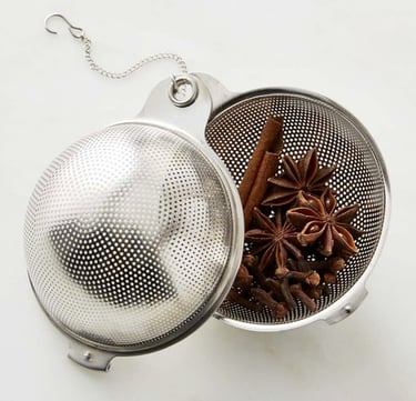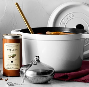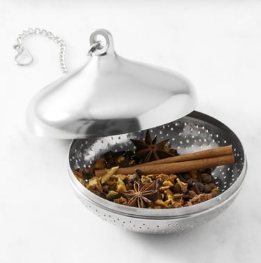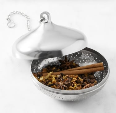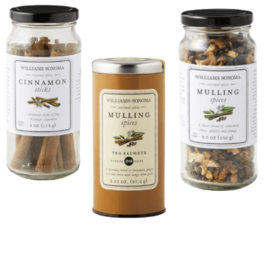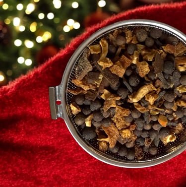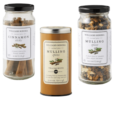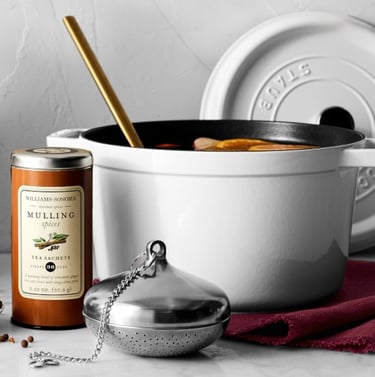 The Spice Symphony: Use whole spices— Cinnamon Sticks, Star Anise, Cloves, fresh Ginger and Allspice, —for optimal flavor infusion and easy removal. Ground spices tend to cloud the wine, resulting in a less refined presentation. There is no right or wrong the spices used will vary depending on the individual taste or the recipe used. Remember, a delicate balance is paramount; less is more. Begin with a smaller quantity of spices and adjust to your preference. Williams Sonoma's Expertly Crafted Spice blend offers a superb, versatile, and convenient all-in-one option. I've used the Spice Blend and their Spice Tea sachets for Mulled Wine and Warm Cider for the past couple of years.