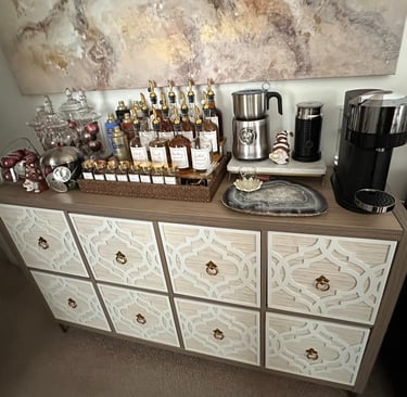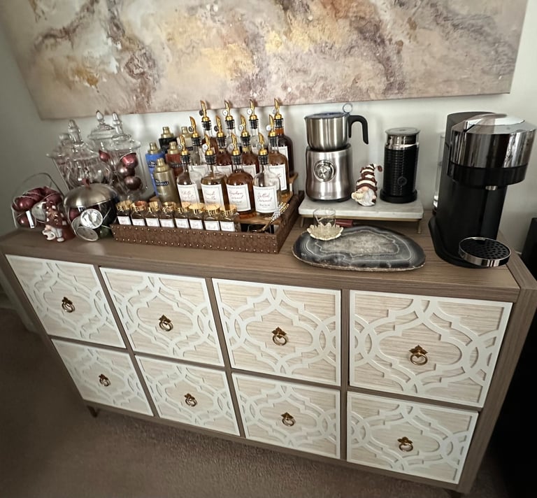 Choose a theme that speaks to you and your style: Think about your personal style, the overall aesthetic of your home, and how you want your coffee bar to make you feel. Once you choose a theme, it will help you select the right decorating elements and accessories. Let your personality shine!